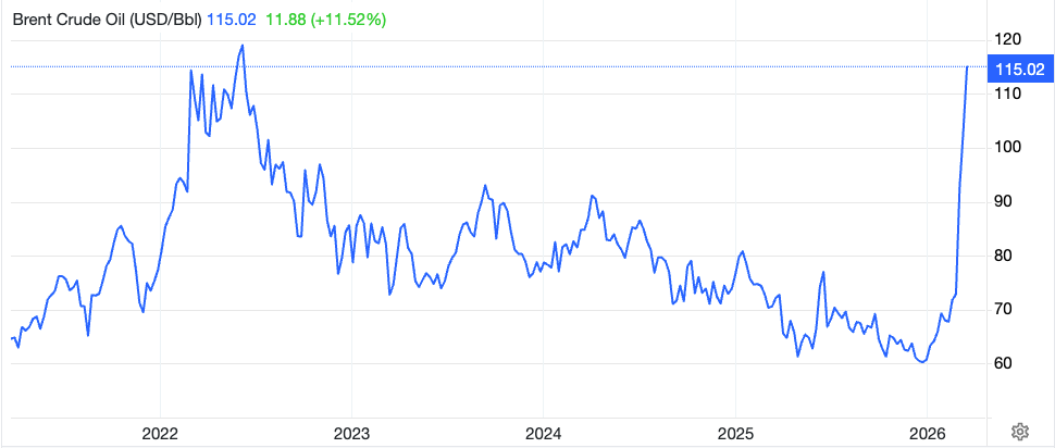 Brent Crude Oil prices rise to $115