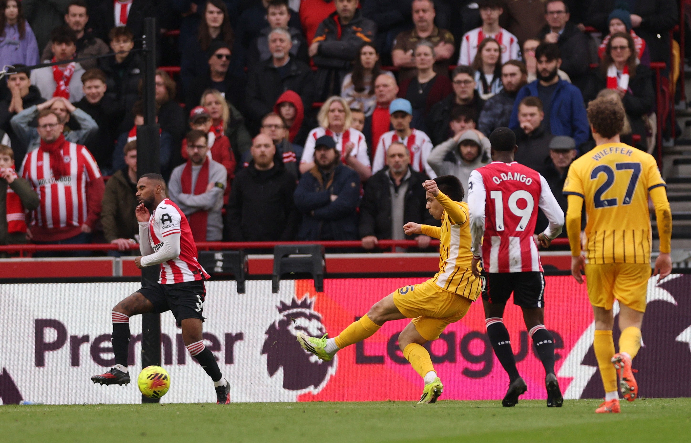 Both goalkeepers were busy early on with Caoimhin Kelleher tested by visiting captain Lewis Dunk before Bart Verbruggen’s poor clearance went unpunished by Mathias Jensen.